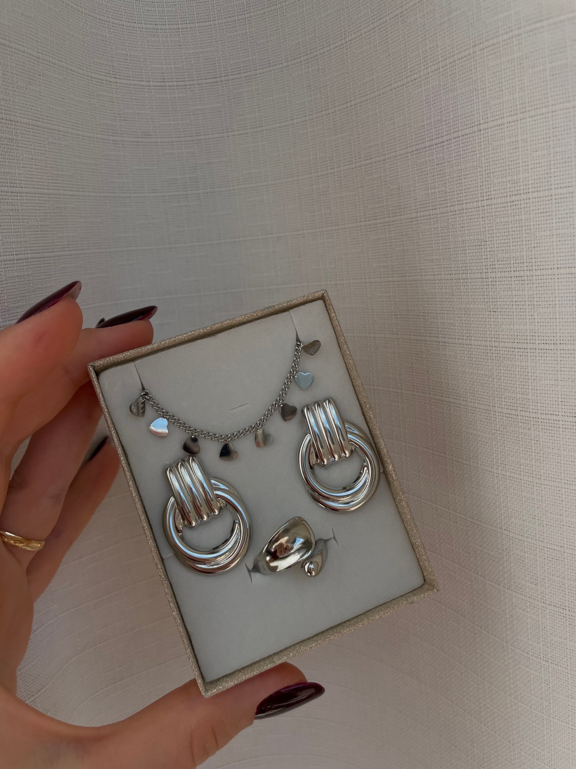 set composto da tre pezzi realizzati interamente in acciaio inossidabile allergico.